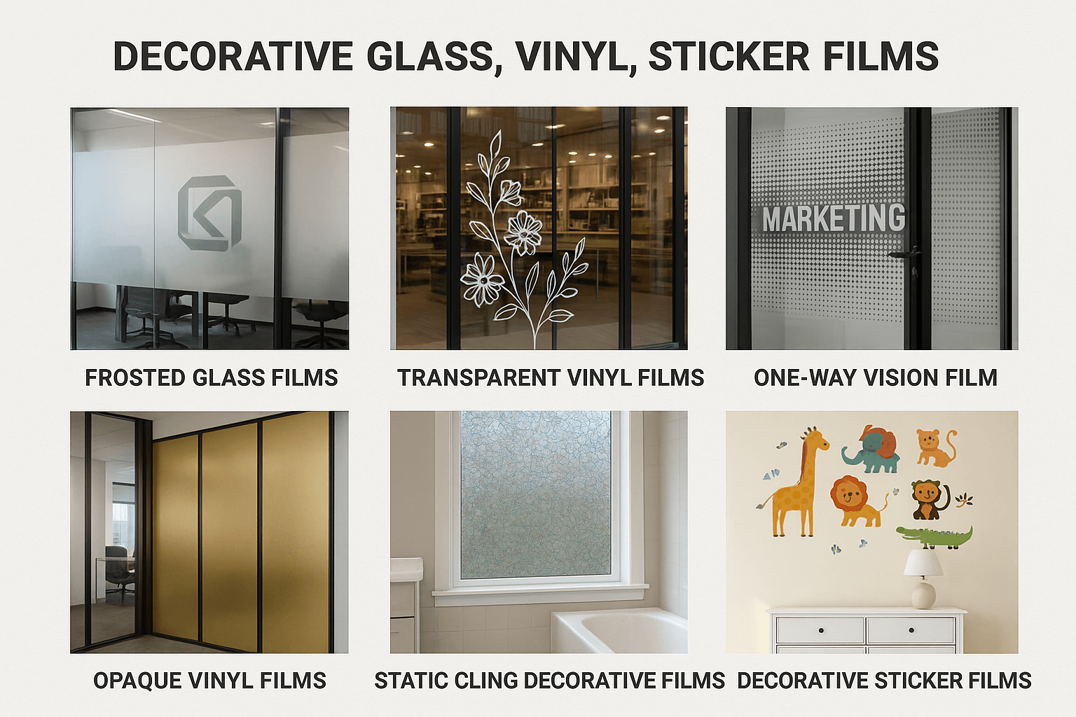 Elevate your interiors with stylish and functional decorative films. Ideal for windows, glass doors, partitions, and shower enclosures, these films add privacy, enhance aesthetics, and protect surfaces. Whether you prefer frosted elegance or artistic patterns, our range of decorative films offers something for every space.